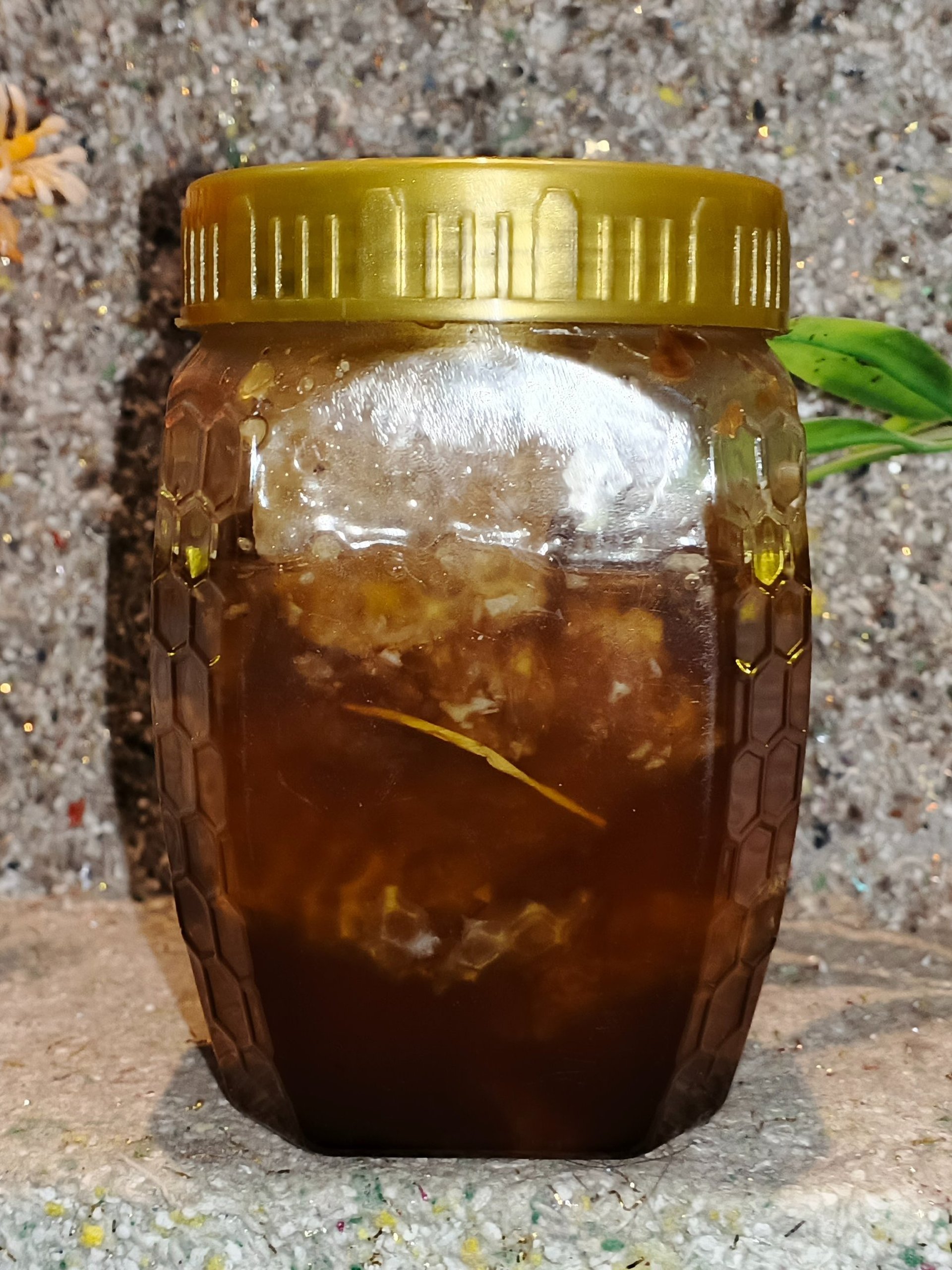 Experience the pure essence of nature with our premium honey jar, featuring golden, raw honey and a generous piece of natural honeycomb straight from the hive. Each 500g jar is packed with rich flavor and nutrients, showcasing the beautiful amber color that reflects its exceptional quality and freshness. Perfect for drizzling over toast, pairing with cheese, or enjoying by the spoonful, this honeycomb-infused honey offers both a delightful taste and a unique, artisanal touch. Treat yourself or gift someone special with this irresistible, all-natural delicacy.